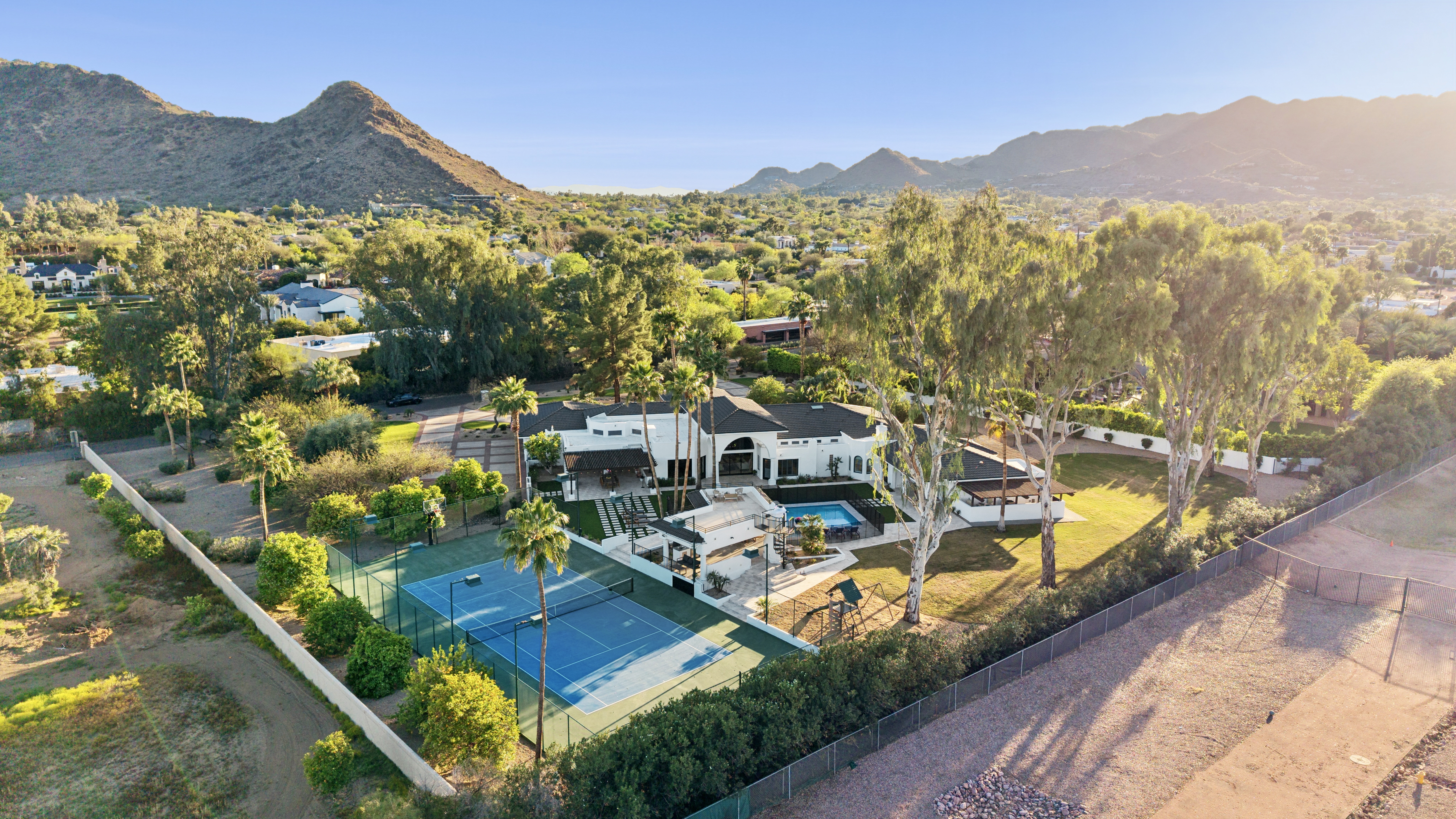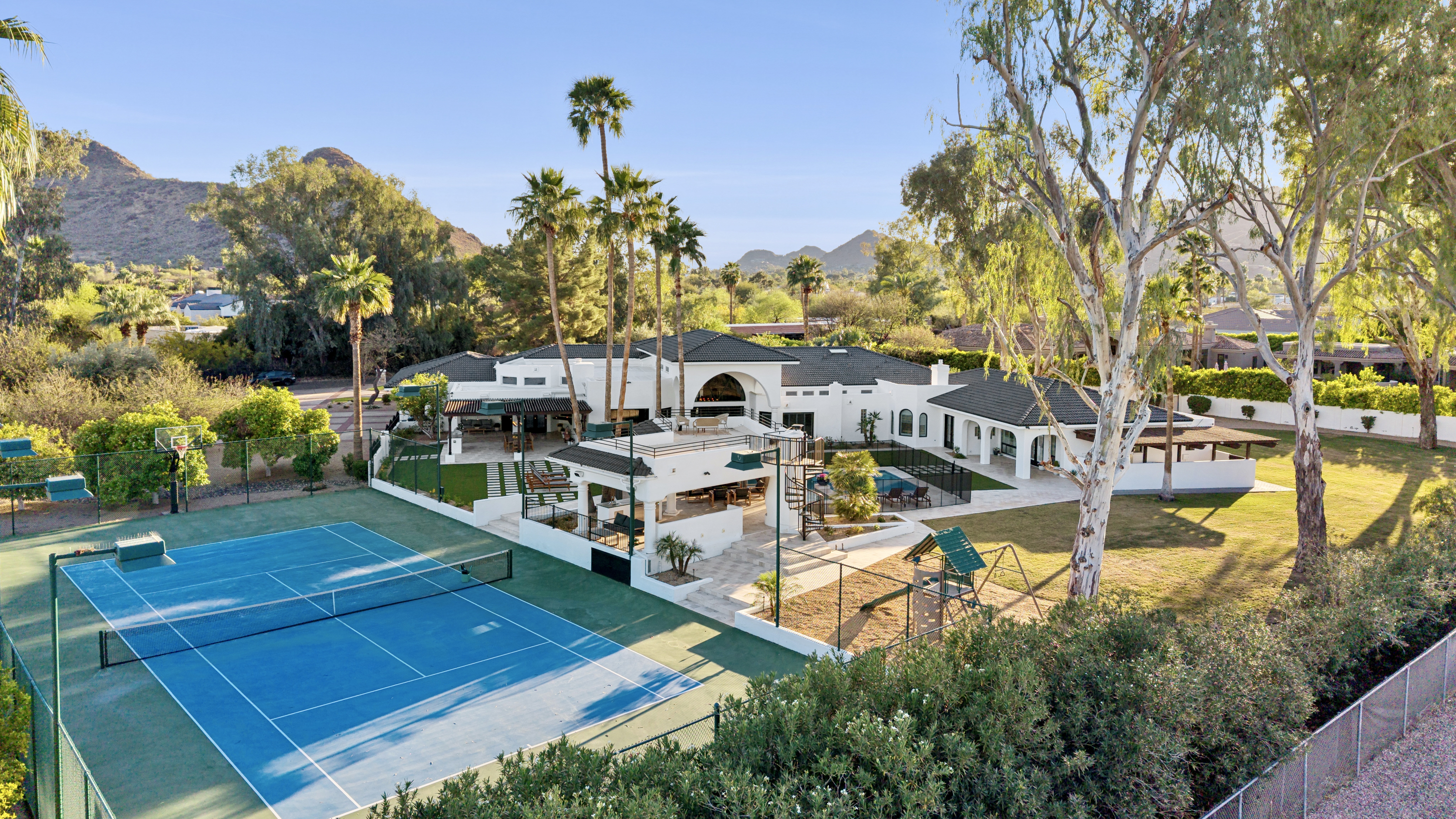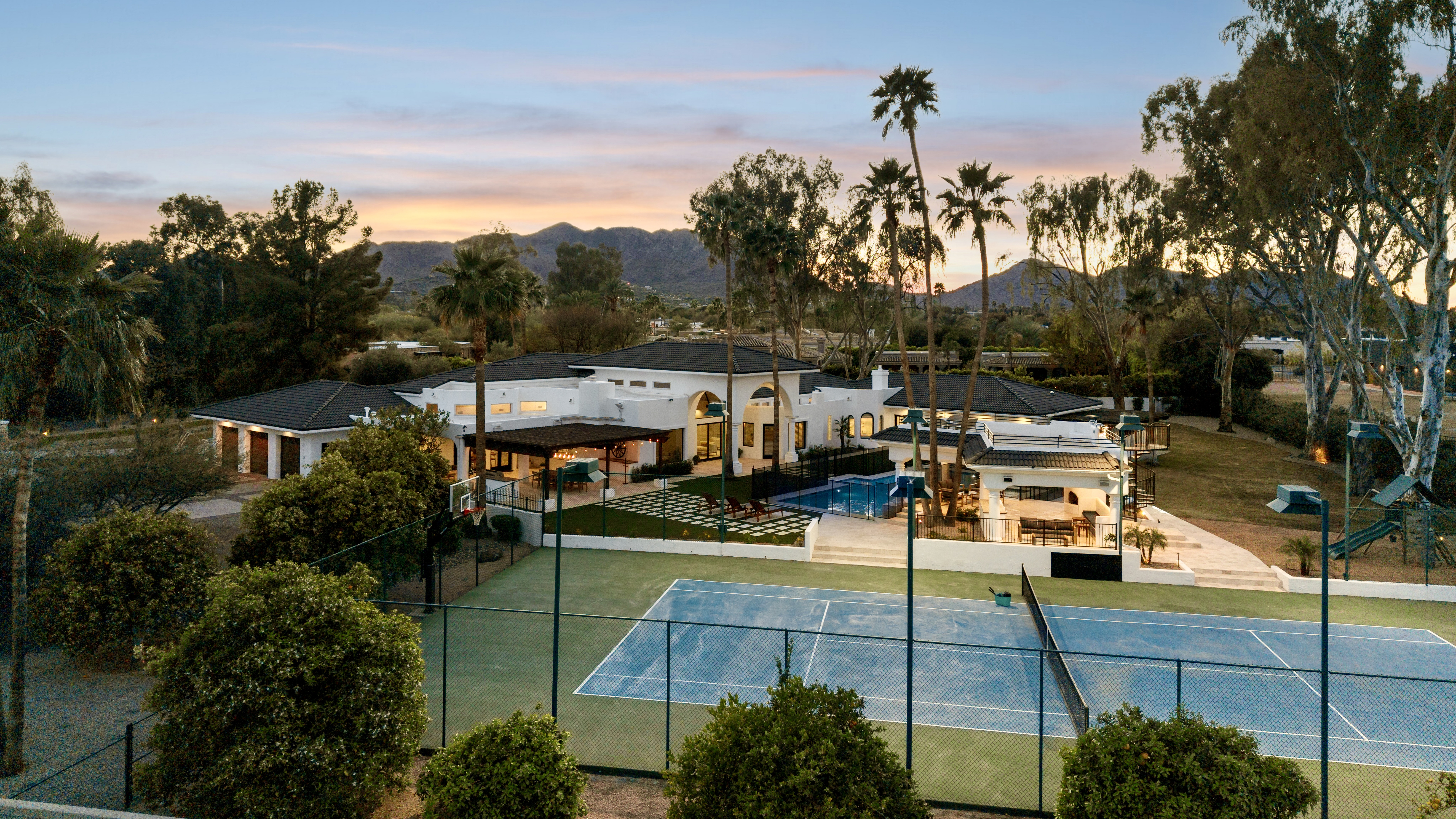 Welcome to Paradise Vista House, a 7,000 sq ft mansion on 2.25 lush acres in Paradise Valley, Arizona. This estate offers 5 ensuite bedrooms, large heated pool & hot tub, gourmet chef’s kitchen, private tennis/pickleball court, expansive lawns with mature fruit trees, central air conditioning, garage parking, and stunning desert & mountain views. Just minutes from Scottsdale.