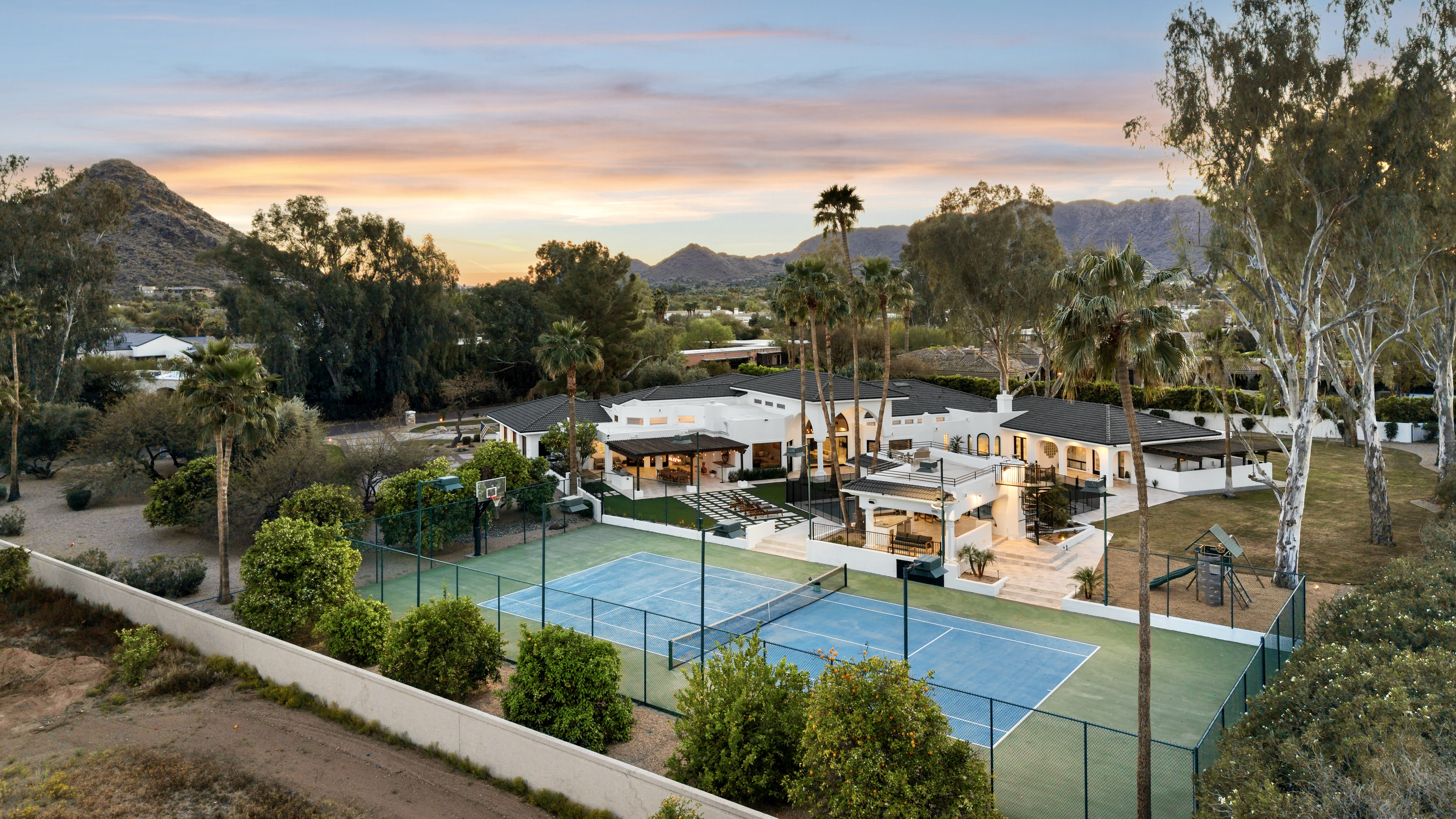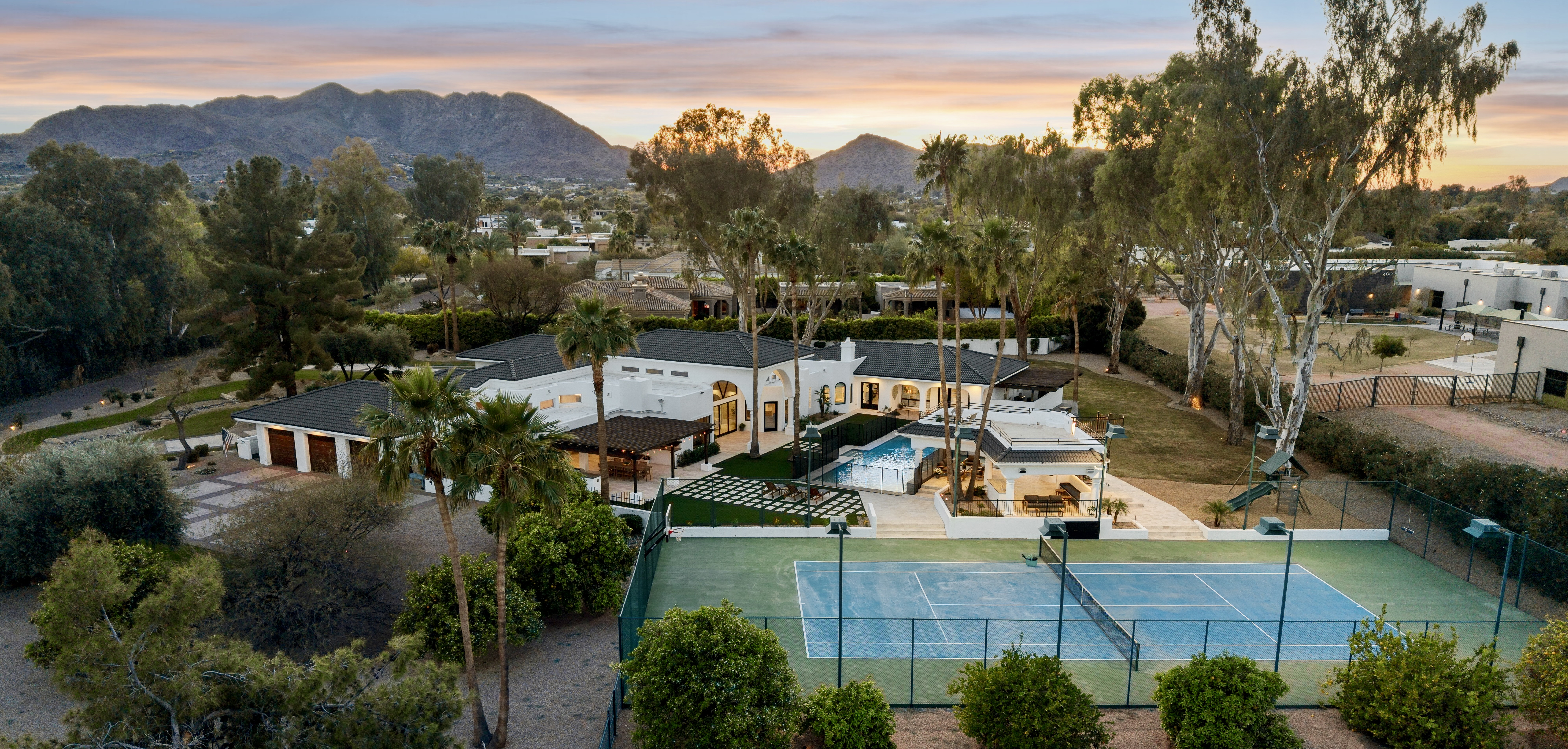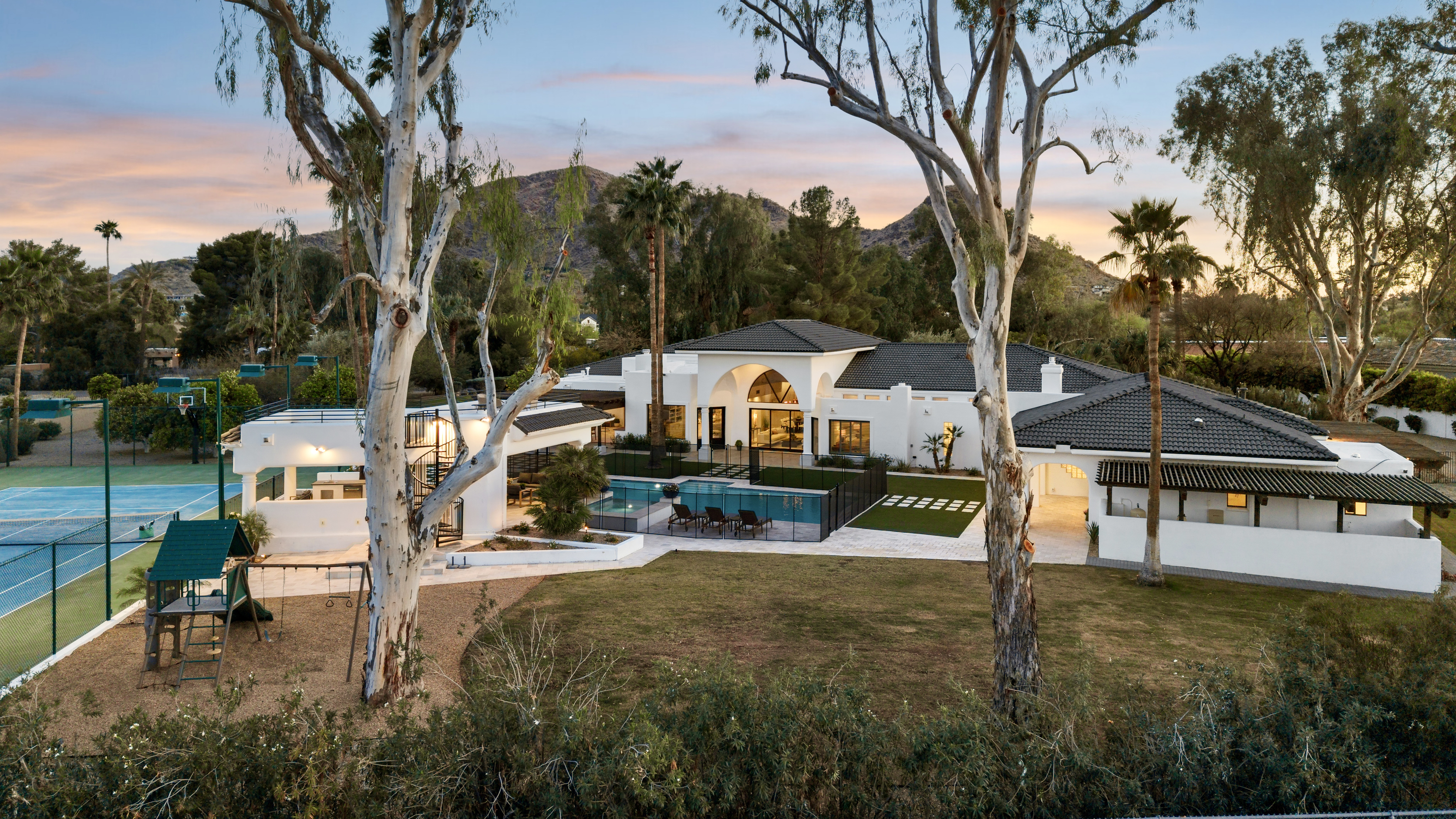 Welcome to Paradise Vista House, a 7,000 sq ft mansion on 2.25 lush acres in Paradise Valley, Arizona. This estate offers 5 ensuite bedrooms, large heated pool & hot tub, gourmet chef’s kitchen, private tennis/pickleball court, expansive lawns with mature fruit trees, central air conditioning, garage parking, and stunning desert & mountain views. Just minutes from Scottsdale.